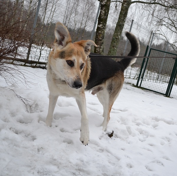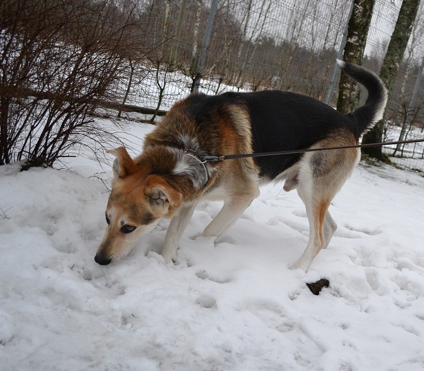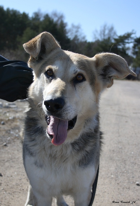 Милейший пес. Спокойный, но игривый. Поводок не тянет (а если и начнет, то после одного маленького рывка поводком назад, понимает, что нельзя). Послушный и терпеливый ( ждет, и стоит смирно, пока ему распутываешь лапы, в которых иногда поводок может застрять)