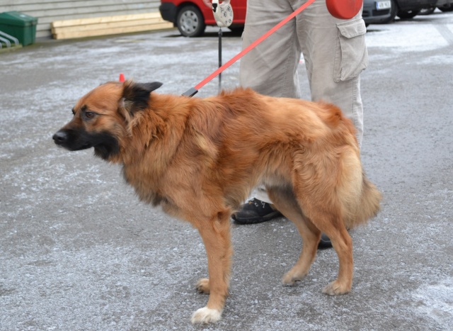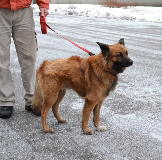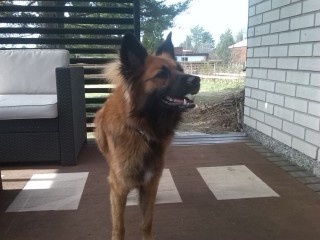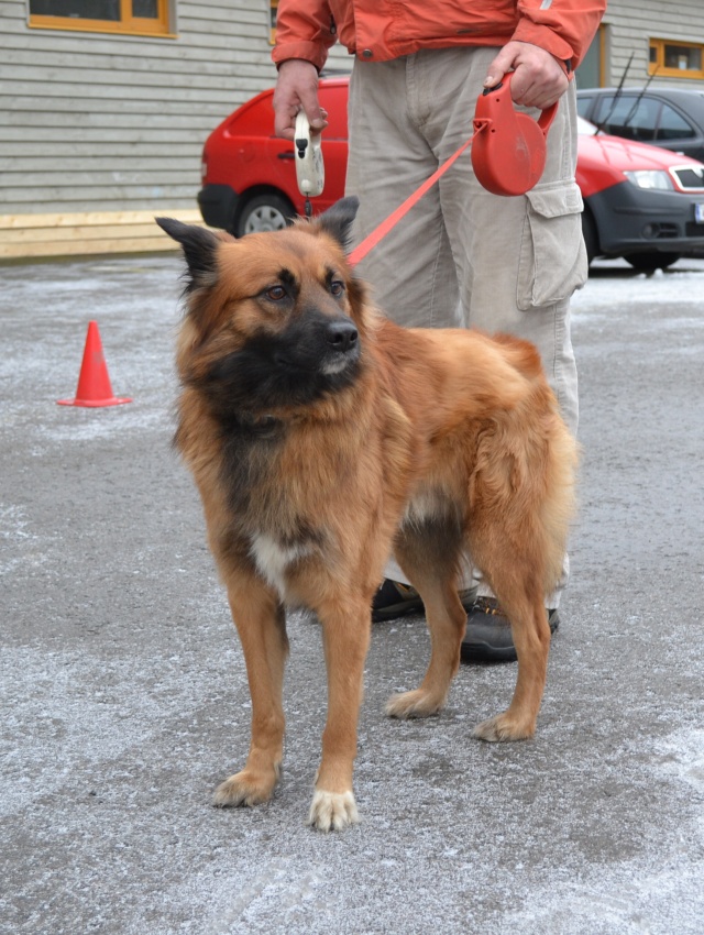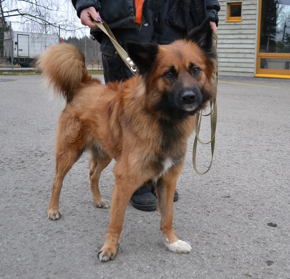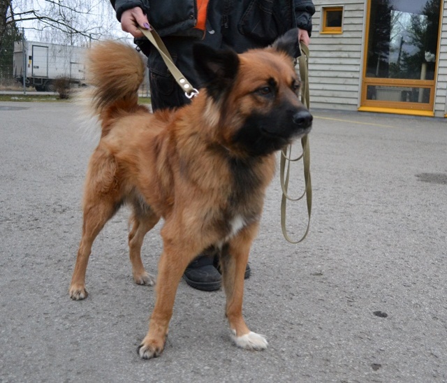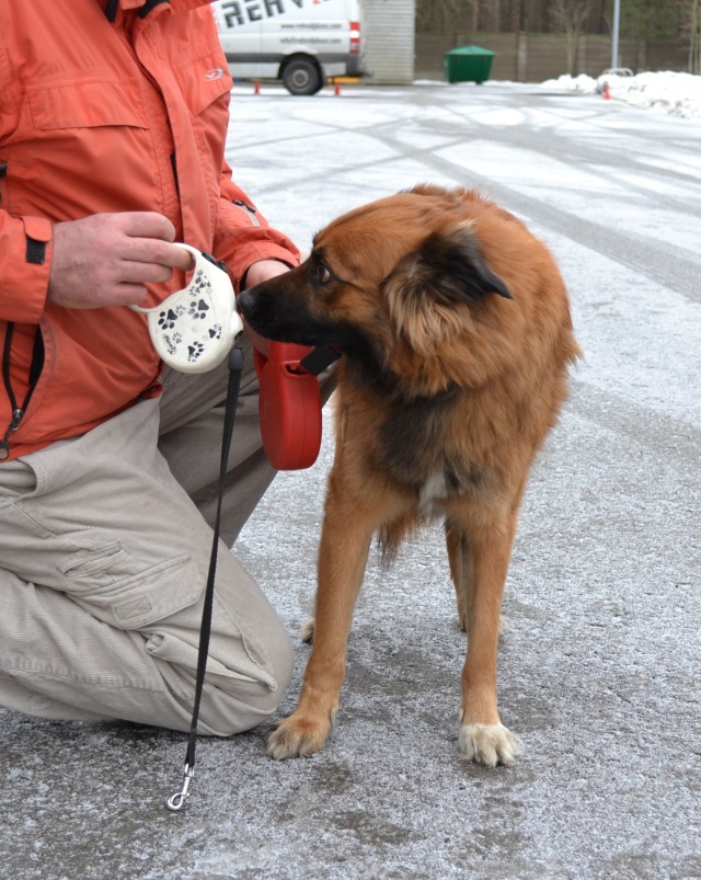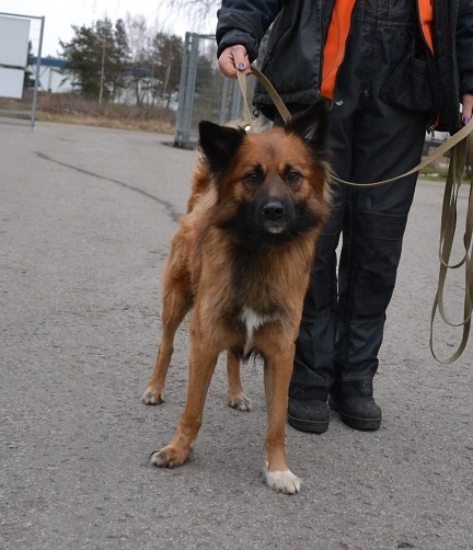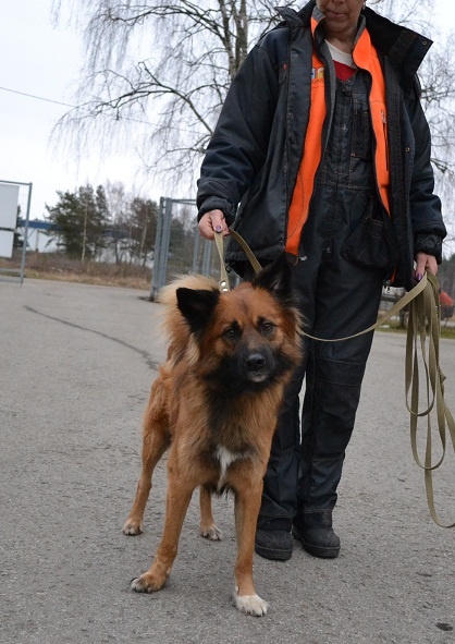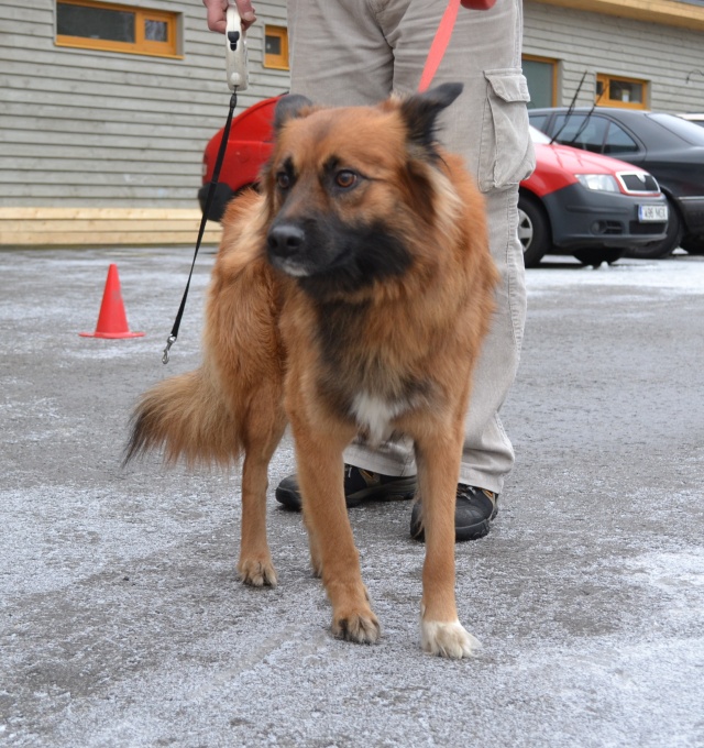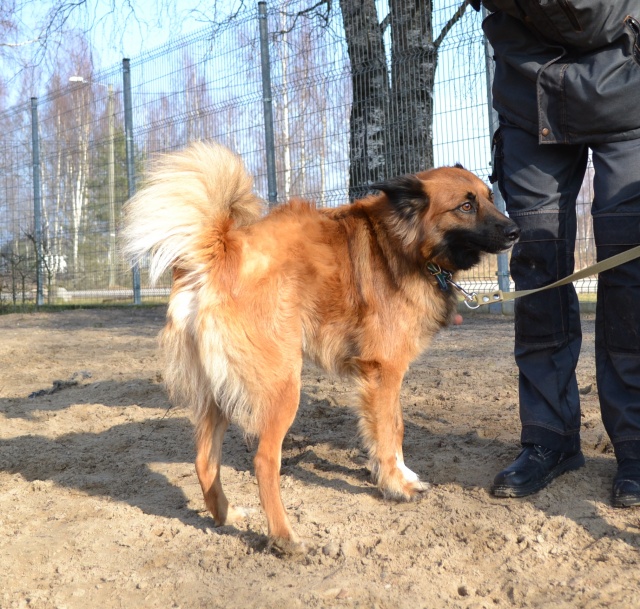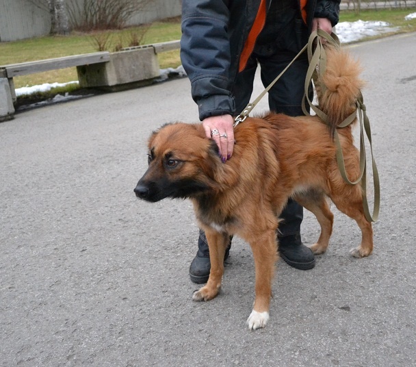 Seotud Flexi rihmaga autoremonditöökoja juurde puu külge. Hästi sotsiaalne koer, seda nii inimeste kui teiste koerte suhtes. Jalutab kenasti rihma otsas ega tiri, algul ei hoolinud ta väga pikkadest jalutuskäikudest, vaid eelistas kiirelt "koju" tagasi minna, aga nüüdseks tundub ta olevat tore kaaslane ka pikematel jalutuskäikudel. Rahulik kaaslane, kes klapib enamike koertega, laseb end kammida, on vaikne ka jutuseltskonnas ja naudib inimeste lähedust.