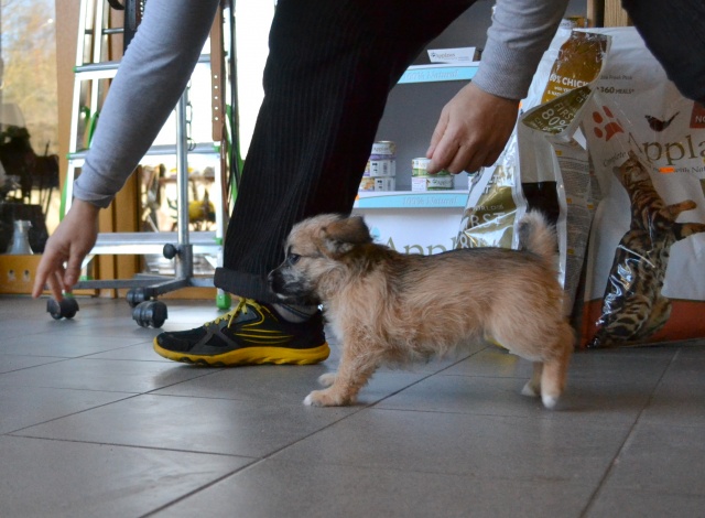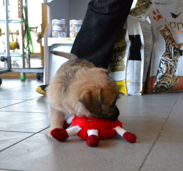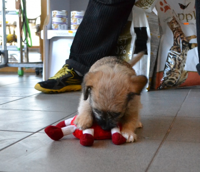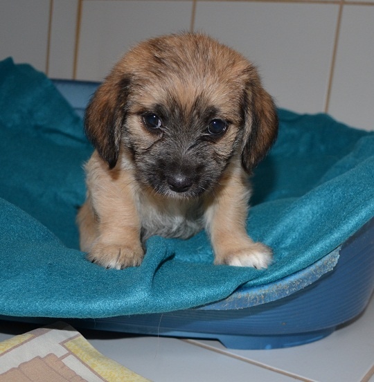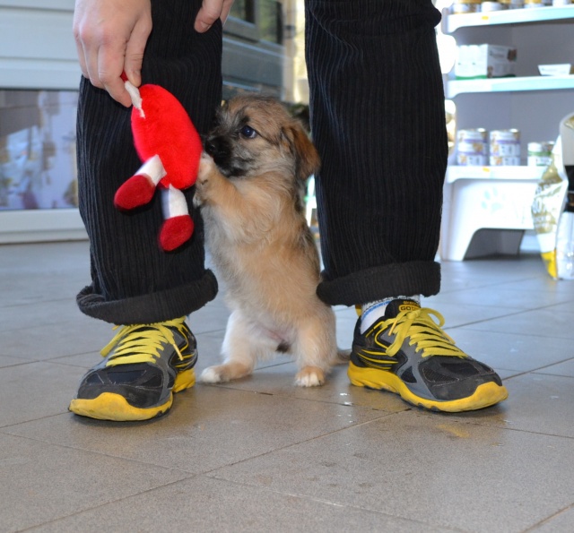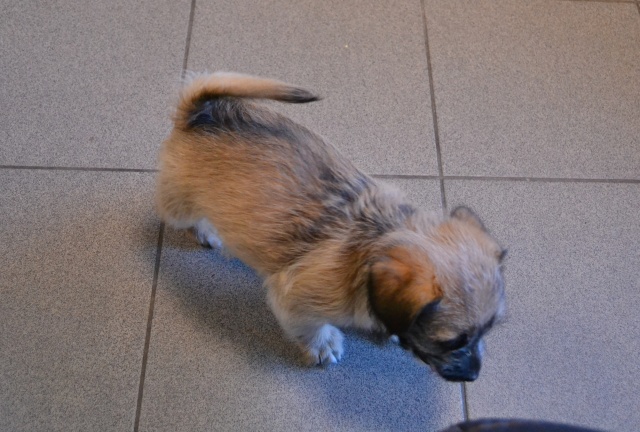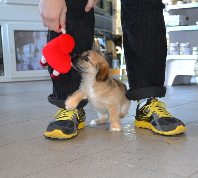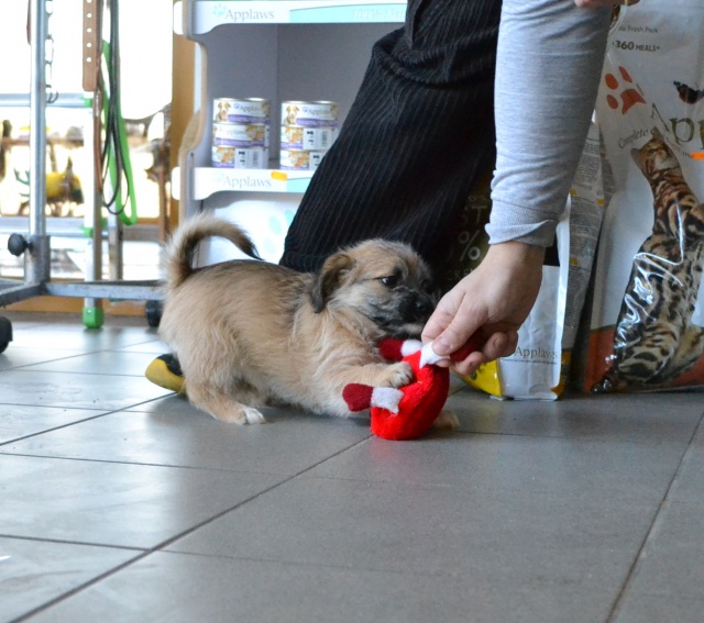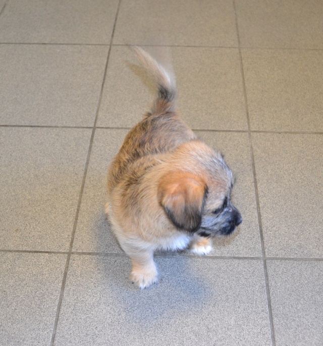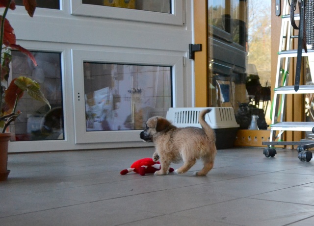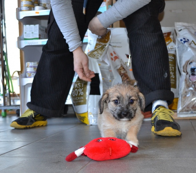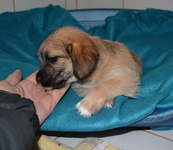 Kutsikas on 1,5 kuud vana (vanus on saabumise kuupäeval). Temast kasvab taksilaadne kuni põlvekõrgune koer (kuna ei ole näinud ei tema ema ega isa, on täpselt väga raske öelda). Tegu väga energilise ja sotsiaalse kutsikaga, kellele meeldib just inimeste, mitte mänguasjadega mürada. Kutsikas on terve ja rõõmus ning mingit stressi hiljutistest juhtumistest ei ole tema puhul küll märgata. Fuajees tehtud fotod 05.03.2014