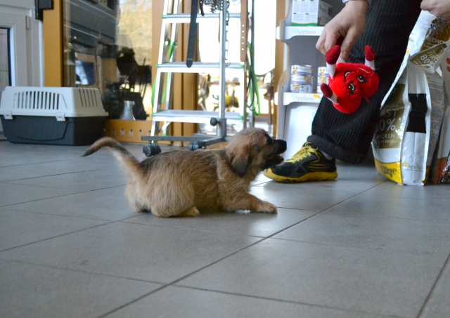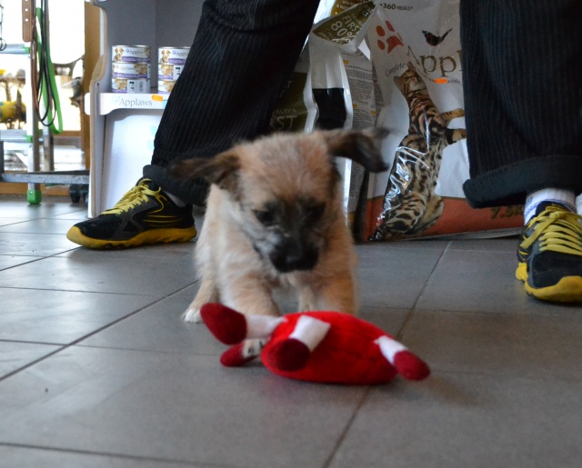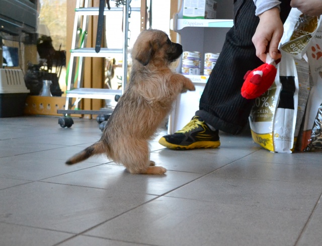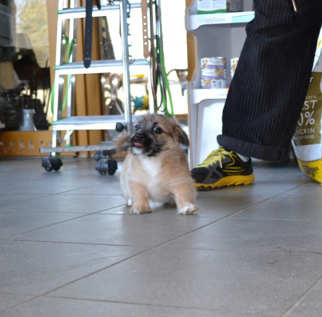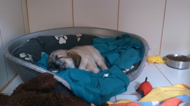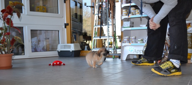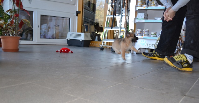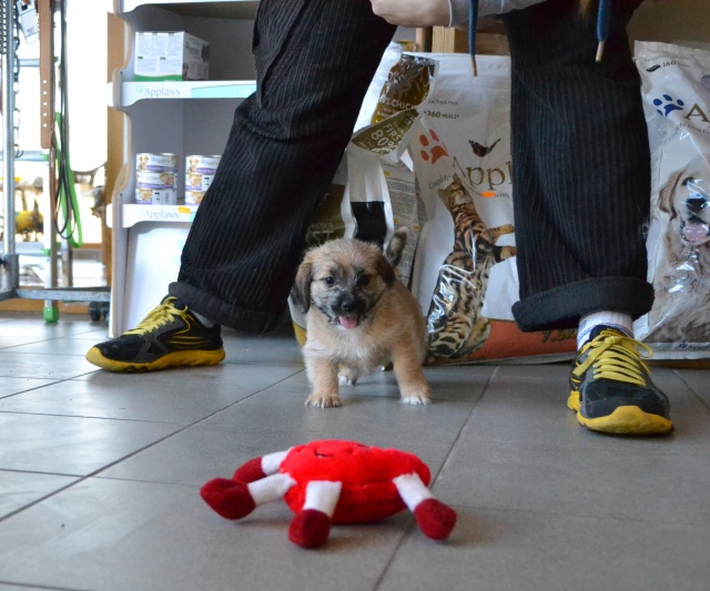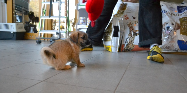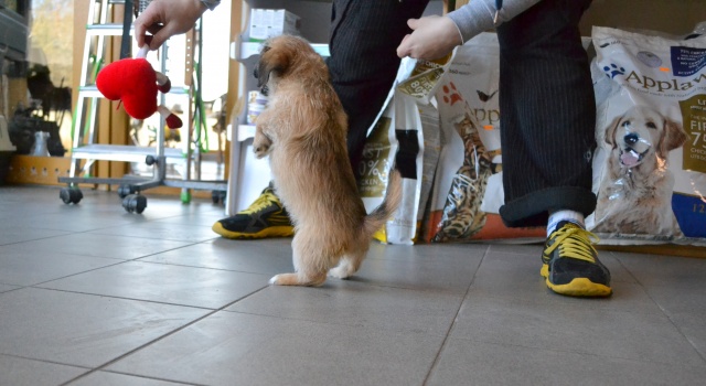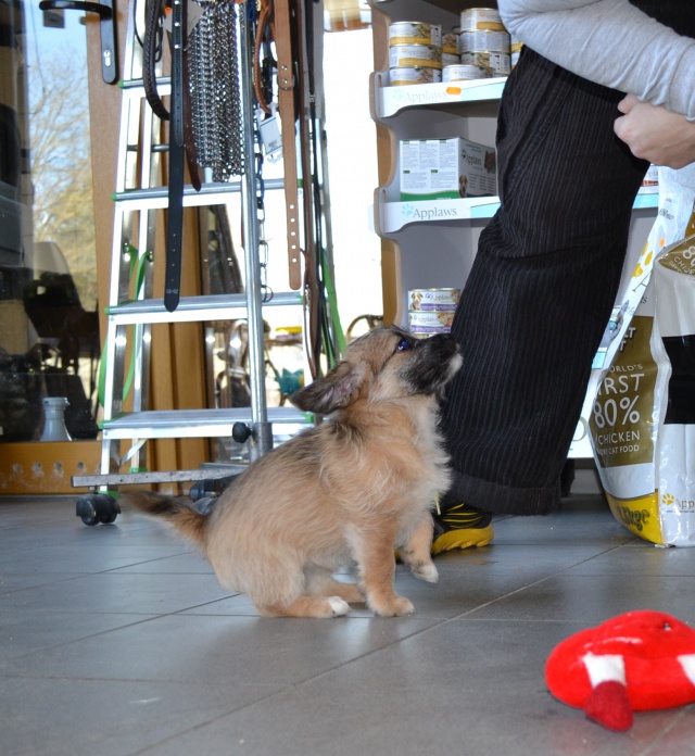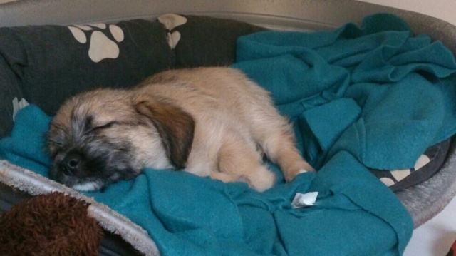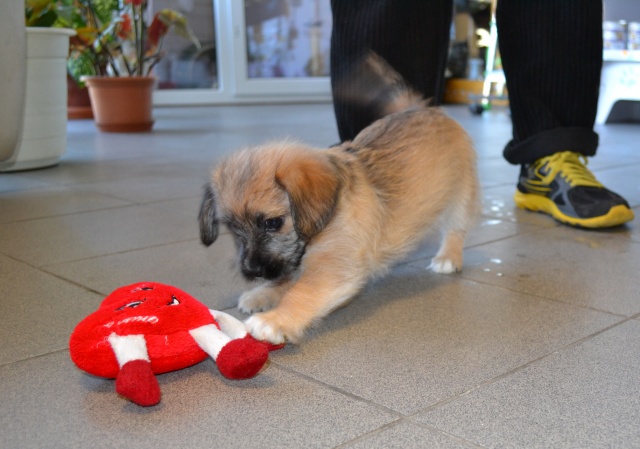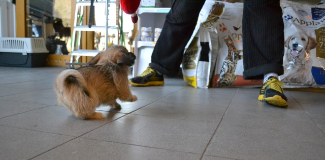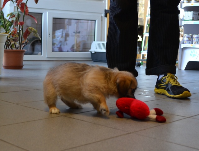 Kutsikas on 1,5 kuud vana (vanus on saabumise kuupäeval). Temast kasvab taksilaadne kuni põlvekõrgune koer (kuna ei ole näinud ei tema ema ega isa, on täpselt väga raske öelda). Tegu väga energilise ja sotsiaalse kutsikaga, kellele meeldib just inimeste, mitte mänguasjadega mürada. Kutsikas on terve ja rõõmus ning mingit stressi hiljutistest juhtumistest ei ole tema puhul küll märgata. Fuajees tehtud fotod 05.03.2014