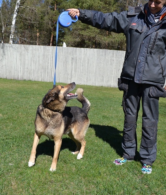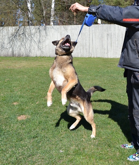 Väga viisakas ja rahulik koer. On saanud ka vähemalt mingit koolitust varasemalt. Rihma otsas jalutab hästi ja ei tiri rihma.