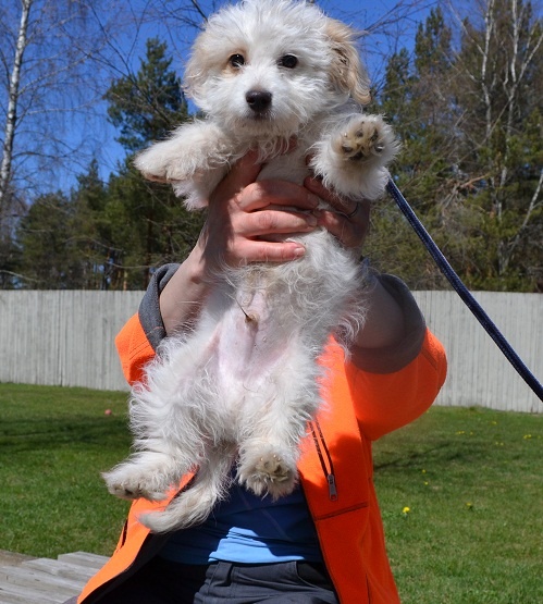 Tegu ühe joodikutest vanapaariga, kes kutsikaid pudeli raha eest vorbib. Isegi viisin vägisi neilt kunagi 3 kutsikat koju, ravisin kõhuparasiiidid välja,lasin süstida ja leidsin neile väga toredad kodud. Antud kutsikas siin ääretult sarnane minu hoole all olnutega.. Teen ettepaneku koera mitte tagasi anda,kui järgi peaks ilmuma vanemas eas loppis näoga paarike.. Need kutsad on suurepärased sõbrad ja väga armsad, mänguhimulised tegelased. Kasvult jäidki selliseks tillukeseks. Edu uue kodu leidmisel ;)